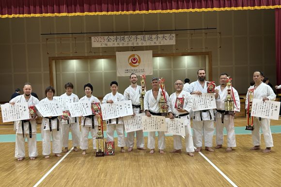 組手・型ともに、当道場の選手たちは緊張感漂う会場でも堂々と技を披露し、国際選手が並ぶ中でもしっかりと存在感を示しました。その中でも、韮澤秀人さんが、安定感のある演武で高得点を獲得。予選・決勝ともに落ち着いた型を披露し、見事「3位」に輝きました。今回の経験は、全ての選手の成長に確かな糧となると確信しています。今後も技術研鑽と鍛錬を重ね、より高みを目指してまいります。