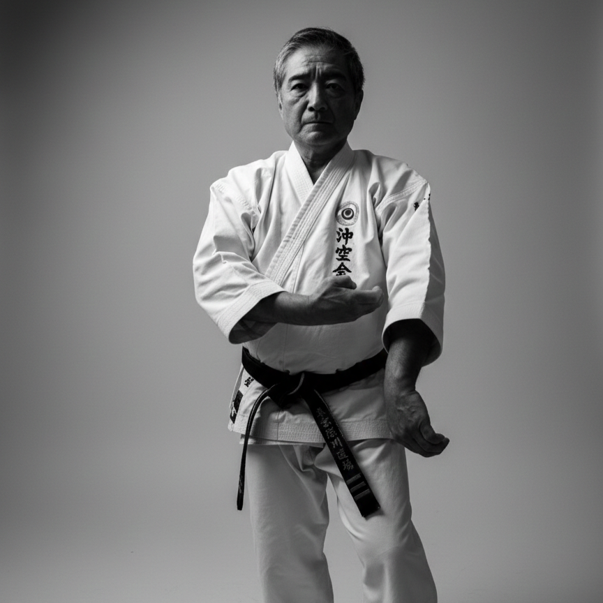 完子和(カンシワ)は、上地完文師が師・周子和のもとで学んだ拳法を基礎に、日本人の身体や精神に合わせて再構築した型です。三戦の理を受け継ぎながらも、より精密な動作と体の統一を追求し、静中に動を見いだす修行法として完成されました。立ち方、足運び、手の構えのすべてが呼吸と連動し、外見の動きよりも内面の整えを重視します。この型は、礼節と精神の鍛錬を通して「心・技・体」の調和を養い、上地流の精神的中核をなす重要な修行とされています。
