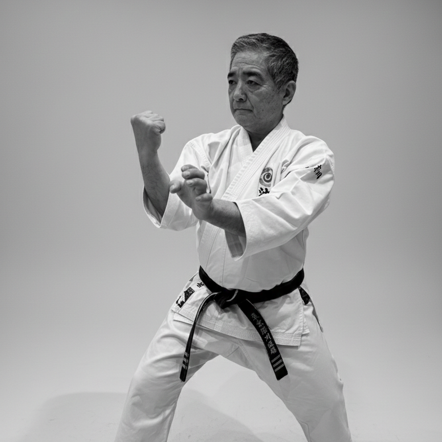 三戦(サンチン)は、上地流空手の根幹をなす基本型であり、中国南派少林拳の一門「パンガイヌーン流」を源流としています。創始者・上地完文師が中国福建省で修行し、呼吸法と体練法を学び体系化したもので、静と動、剛と柔を調和させることを目的としています。正しい姿勢と呼吸を通じて心身を統一し、体幹と集中力を養うことにより、内なる力の発現を導きます。三戦は単なる技術の稽古ではなく、武道としての「理と業の一致」を体現する修行であり、上地流の全ての型と精神の基礎となっています。